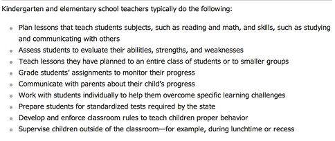 Figure 3. Typical Duties of Elementary School Teachers. Photo Source: Bureau of Labor Statistics.